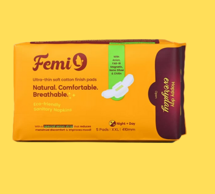 Pick what fits your flow—L, XL, XXL—and Femi9 Pantyliner for everyday freshness.
